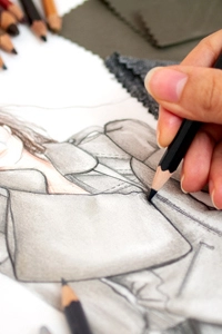 После создания образа немаловажным фактором является выбор ткани. Нам нужно будет выбрать ткань идеально подходящую по цветовой палитре, фасону и типу ткани. Ткань обычно выбирают двух ценовых диапазонов. Дорогая итальянская ткань для эксклюзивных платьев премиум класса. И эконом вариант для всех остальных, так как качество тканей эконом и среднего класса практически не отличается, а цена на них может превышать в несколько раз. Поэтому покупка ткани и возможных материалов не ударит по вашему карману.